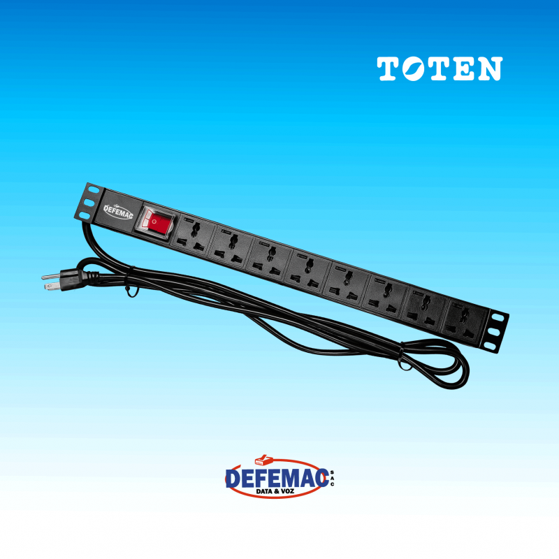 Diseñado en carcasa de plástico resistente, ideal para la distribución segura y ordenada de energía dentro de racks y gabinetes de telecomunicaciones.